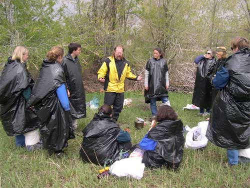 TREC teachers learn how to make a net.  (Field Skills - Denver, CO.)