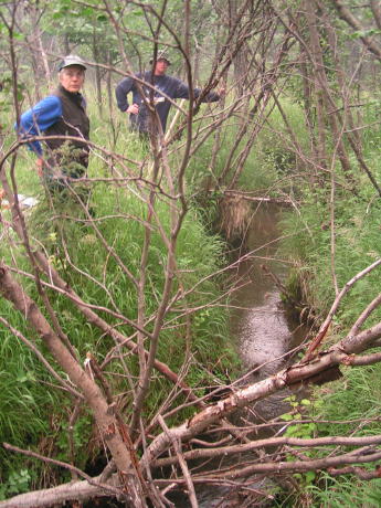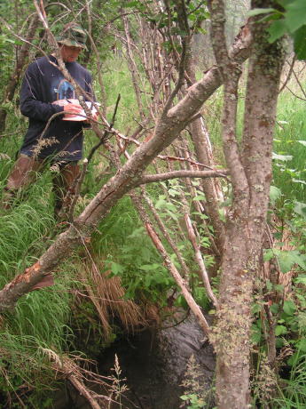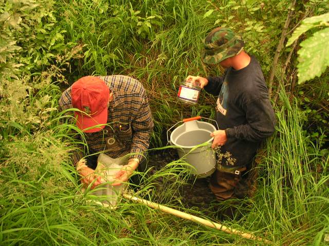 Professor Pinkham and Casey Bell kicking and netting at Standard Creek