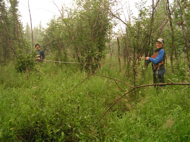 Pic Title: Kathleen and Casey getting measurements of the sampling site