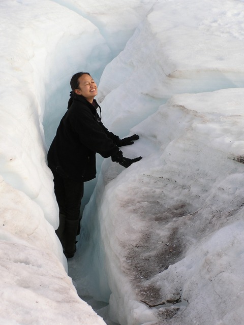 Pic Title: Karen, Hahn, & Halim together on the aufeis hike.