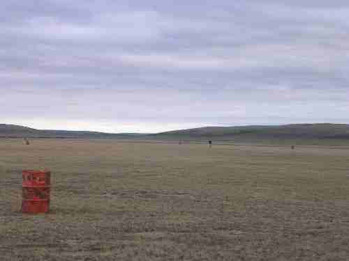 This is the "runway" at Green Cabin. It is a flat area of tundra lined with old gas drums!
